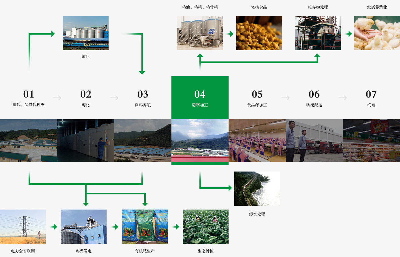 与国内养鸡行业普遍采用的“公司+基地+农户”的经营模式不同,圣农坚持“自繁、自养、自宰”的全产业链生产模式,涉及饲料厂、祖代父母代种鸡场、孵化厂、商品代肉鸡场、宰杀厂均为公司自有。 |