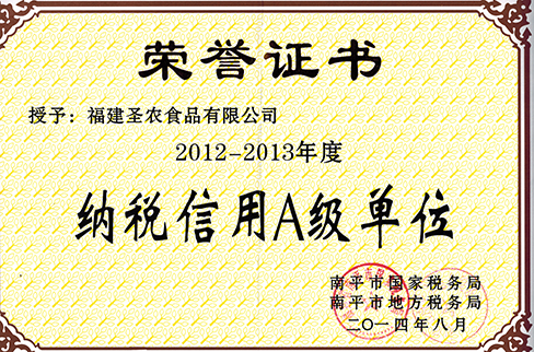 2014年8月(食品)2012-2013年度南平市纳税信用A级单位
